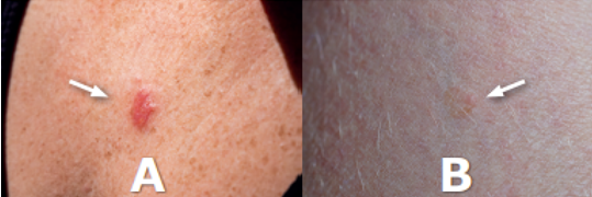 Auflösung des Rätsels: Auf beiden Bildern sehen Sie Formen des weißen Hautkrebses!